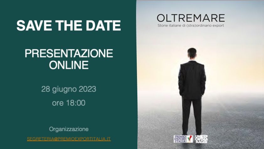 Il 28 giugno dalle ore 18 alle ore 19 si terrà l'evento online di presentazione dell'e-book "Oltremare - Storie italiane di (stra)ordinario export". Dopo il successo della cerimonia di premiazione, tenutasi a Modena il 13 aprile scorso, sarà ancora un piacere avervi nostri ospiti per prendere visione in anteprima della nostra pubblicazione, alla quale verrà data diffusione nazionale attraverso i canali dei partner.