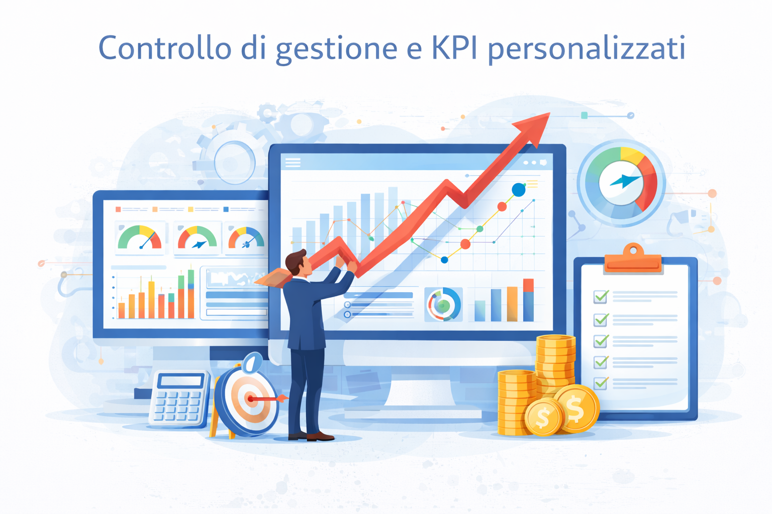 Sistemi di controllo di gestione su misura con indicatori economici, finanziari e patrimoniali, reporting periodico e dashboard direzionali per il monitoraggio delle performance.
