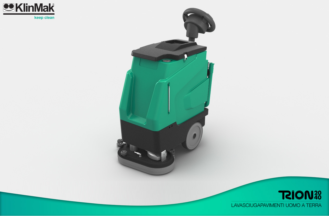 KlinMak srl è lieta di presentare la nuova lavasciugapavimenti uomo a terra Trion 4050 (40 l - 455 mm ) ; con l'innovativa "Power Unit†monomotore in grado di azionare sia le due spazzole dentate che la turbina di aspirazione. Cio' garantisce un importante risparmio energetico a vantaggio dell'autonomia, una fortissima riduzione della rumorosità ed un ridotto impatto ambientale.