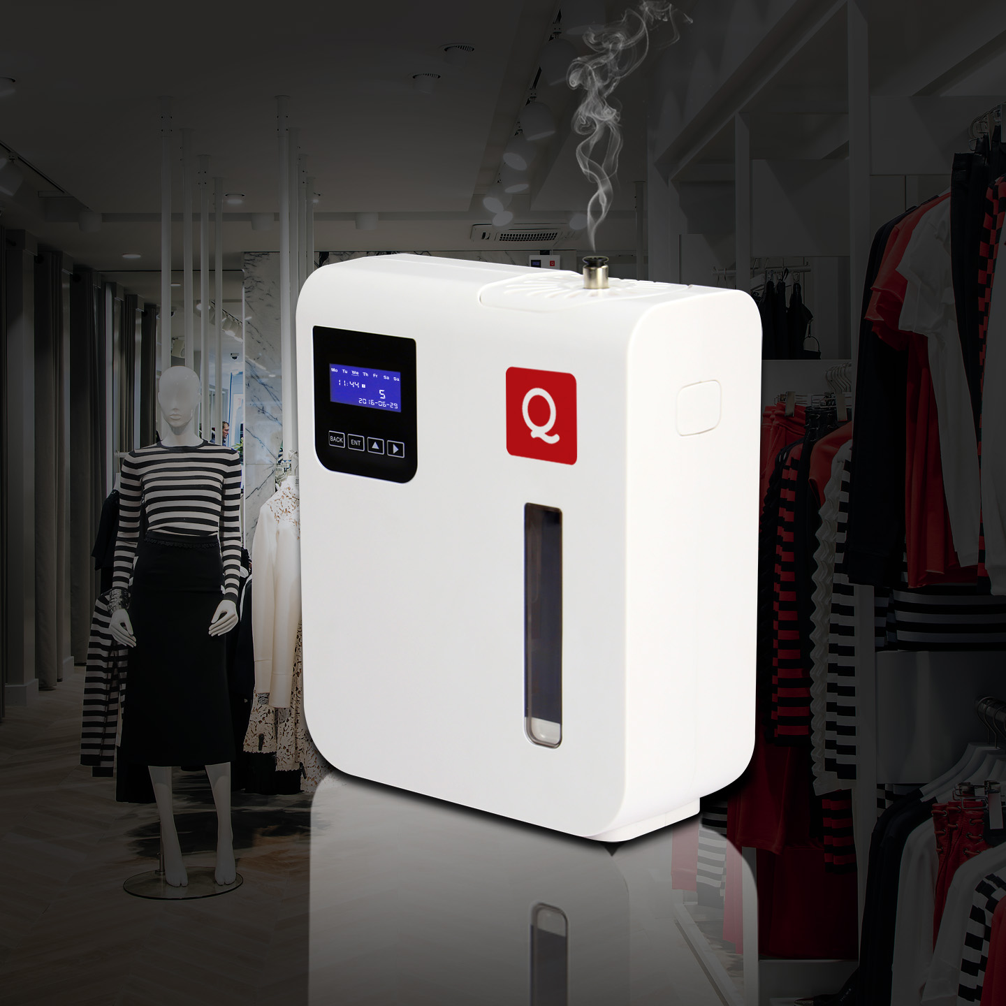 Q350e è un diffusore di fragranza dal design ricercato e dall'elevata silenziosità, che diffonderà ben 200ml di profumo dove più ti aggrada, con una durata di ricarica sbalorditiva, in ambienti di 250 - 350 m³.