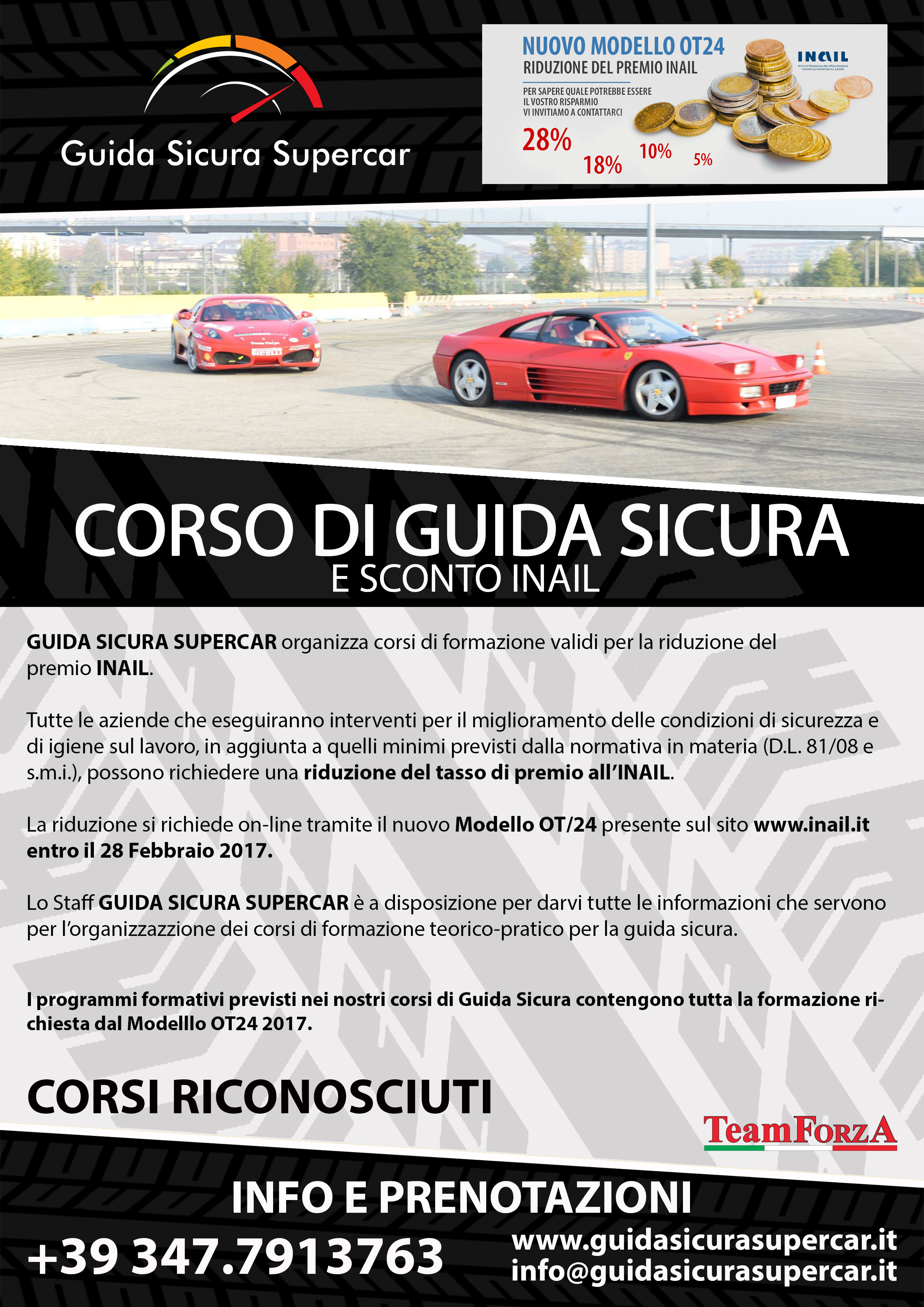 Guida Sicura Supercar organizza corsi di guida sicura per la riduzione premio INAIL.